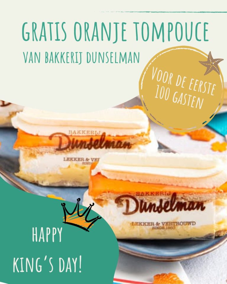 π De eerste 100 gasten krijgen van ons een heerlijke oranjetompouce (Bakkerij Dunselman)!